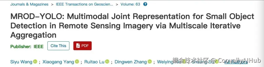 火箭工程大学王思宇博士、杨小冈教授团队在论文《MROD-YOLO: Multimodal Joint Representation for Small Object Detection in Remote Sensing Imagery via Multiscale Iterative Aggregation》中提出创新解决方案,将遥感小目标检测的mAP50指标提升至77.9%,较现有先进模型提高4.2个百分点。
