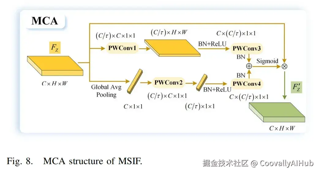 - 多尺度通道注意力(MCA):通过全局与局部上下文分支生成注意力权重