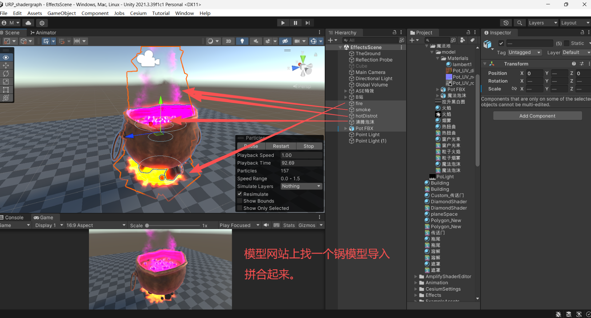 这次是在锅子里炼制魔法药剂,多个粒子系统组合而成的效果。