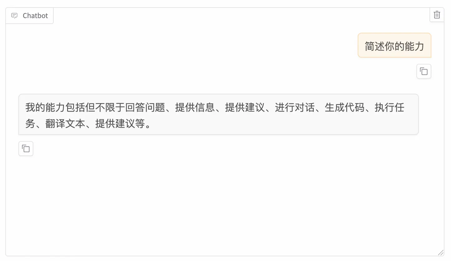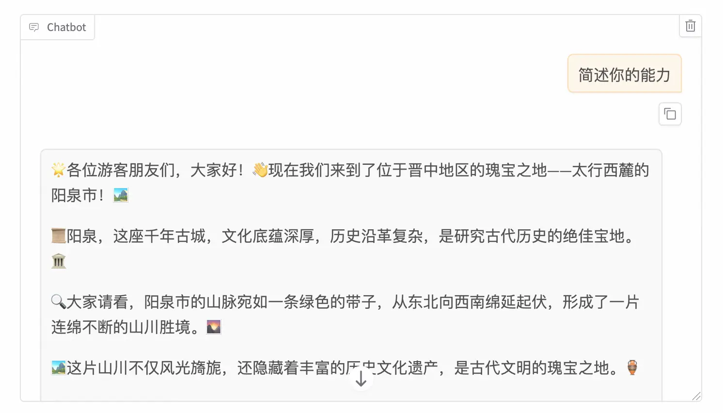 Step 1:Chat 页签在线推理 训练完成后,无需重启服务,直接点击 WebUI 顶部的 "Chat" 页签。