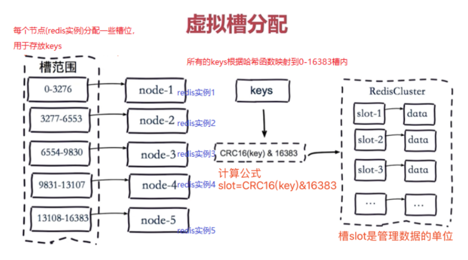 虚拟槽分区是 redis cluster 中默认的数据分布技术,虚拟槽分区巧妙地使用了哈希空间,使用分散度良好的哈希函数把所有数据映射到一个固定范围的整数集合中,这个整数定义为槽(slot),而且这个槽的个数一般远远的大于节点数。
