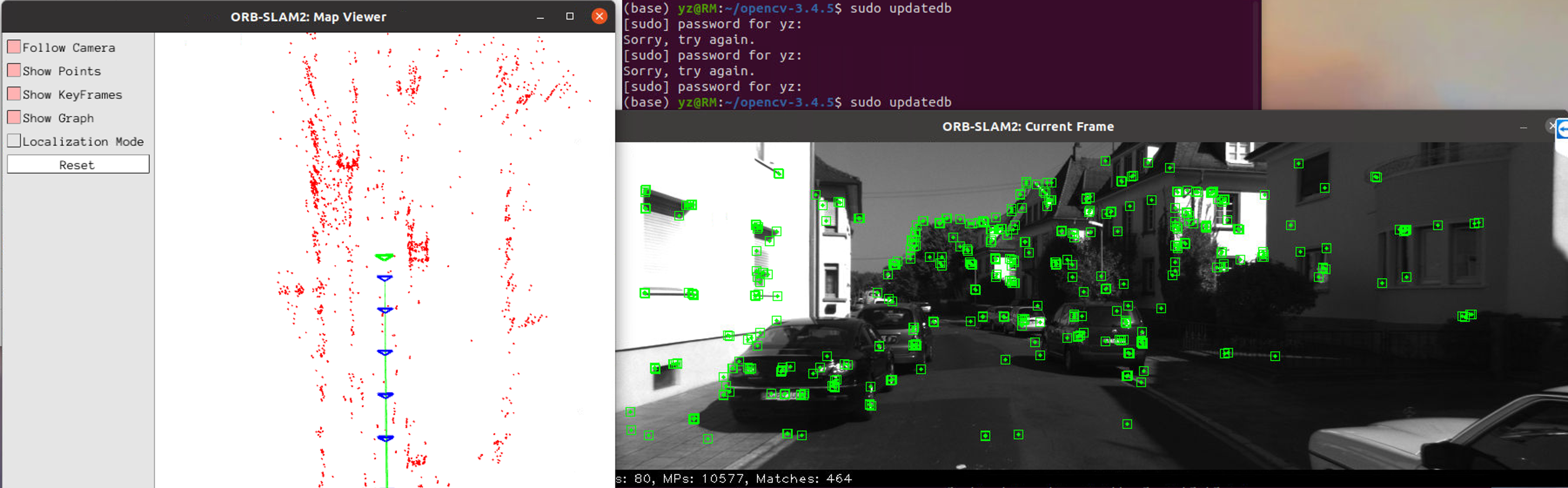 成功后来用数据集跑跑试试看,由于我后续是想用双目模式,所以这里只跑一下官方给的Stereo Examples,用KITTI数据集(em?怎么又是你,伟大的数据集omg)