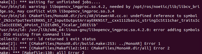 最后仍然没能成功。就是因为opencv的版本问题,因为我不想卸载原来的opencv4编译的cv_brodge,最后询问了师兄,师兄建议使用opencv4.2编译,而且官方仓库的ros版本并不能在后续发布话题实现进一步的栅格地图构建和规划,所以放弃ros接口编译,重新去使用改编的ros版本代码。在后续文章中会继续发布。