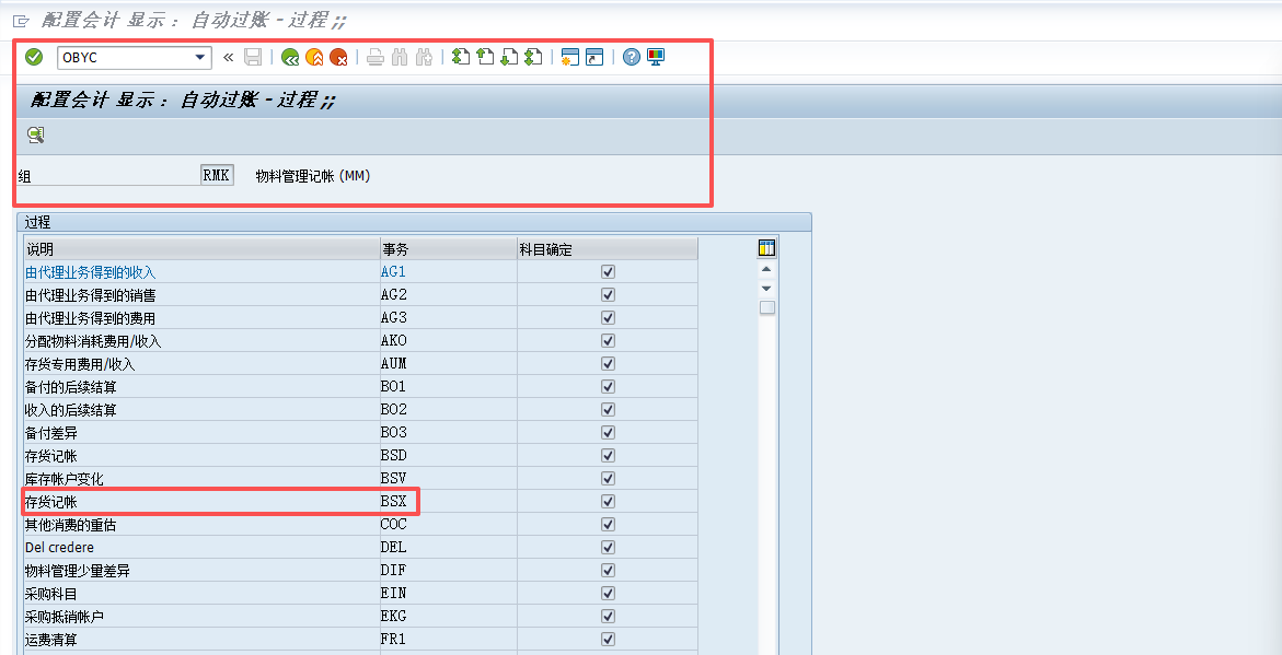 移动类型→价值串:移动类型201绑定价值串 WA01 ,系统确定需调用事务键 GBB (消耗科目)和 BSX (库存科目);