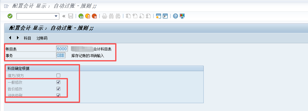 科目修改是对事务键的补充,用于区分同一事务键下的不同业务场景(仅针对需要细分的事务键,如 GBB )。例如: