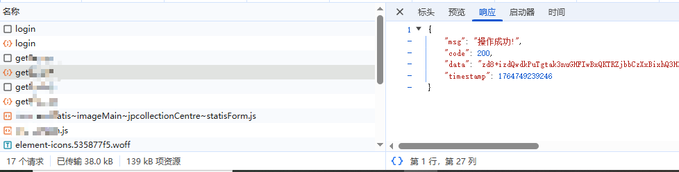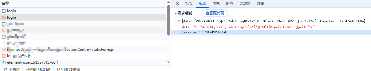 - 前端效果,可以看到前后端data的请求响应参数就加密完成