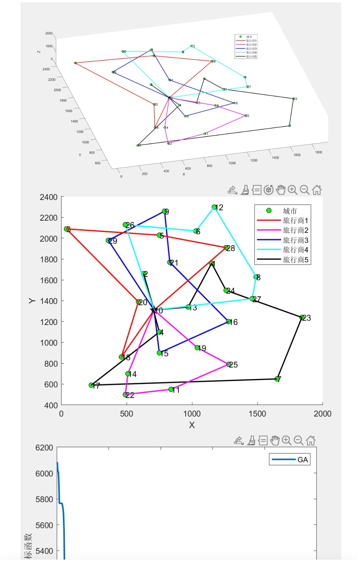 经过多次迭代后,种群中的最优个体就是我们想要的最优路径分配方案。我们可以通过可视化工具来展示最终的路径。