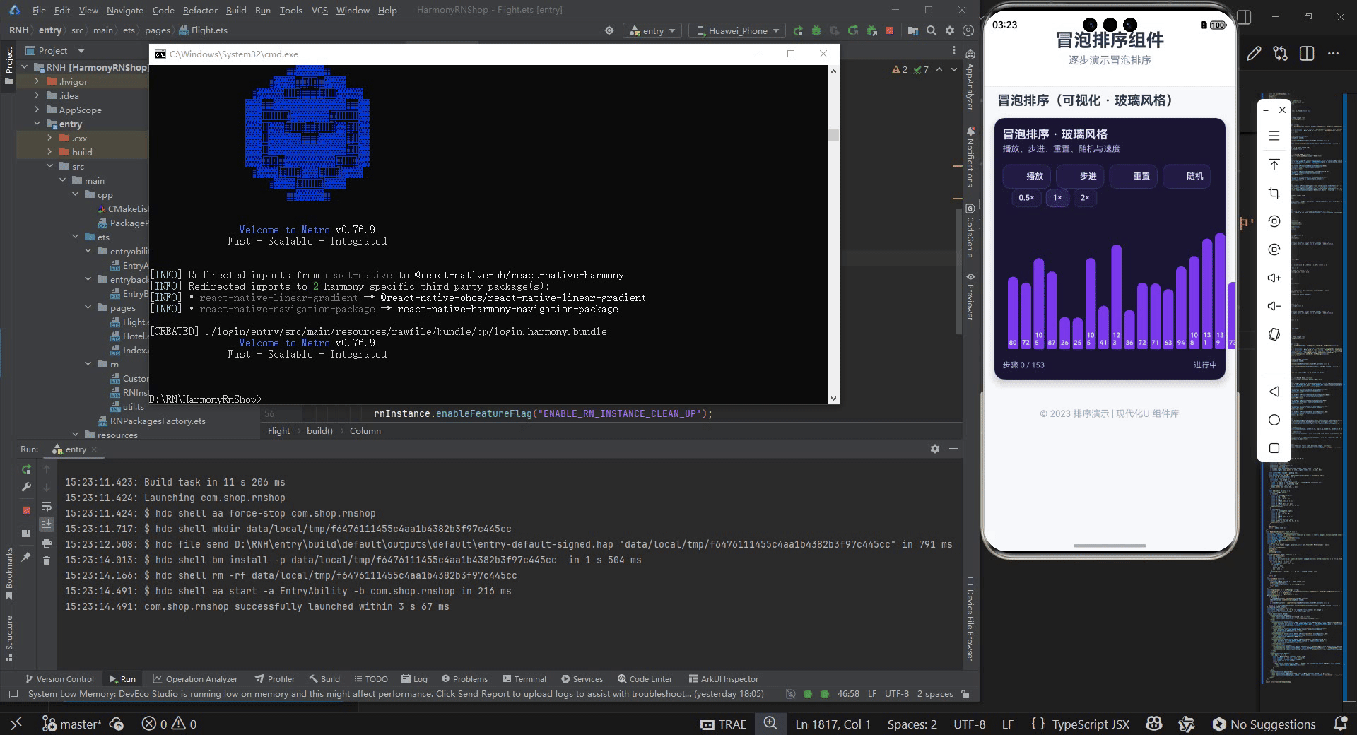 接下来通过打包命令npn run harmony将reactNative的代码打包成为bundle,这样可以进行在开源鸿蒙OpenHarmony中进行使用。