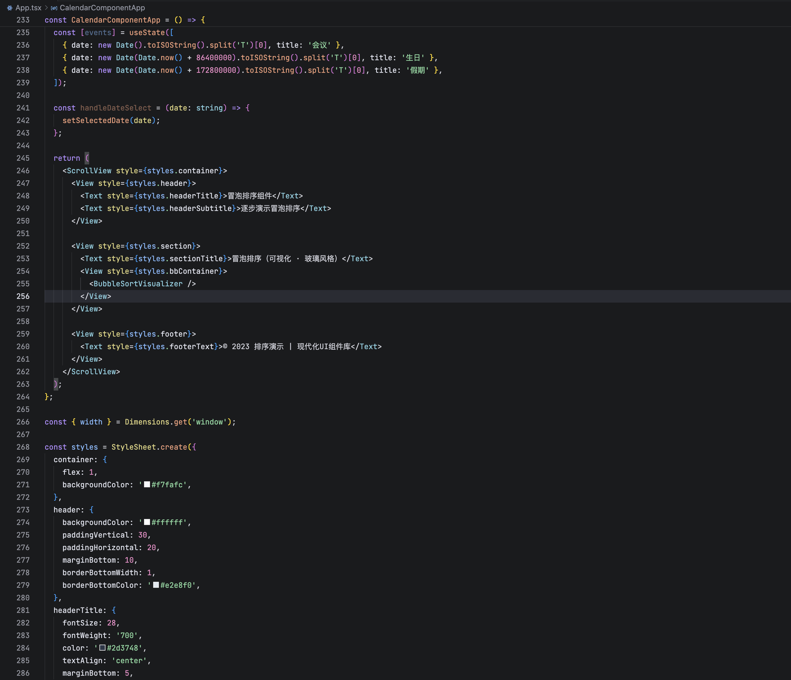 在 React Native 中,你可以在组件内部定义一个冒泡排序函数。例如,你可以在 App.js 文件中添加一个 bubbleSort 函数: