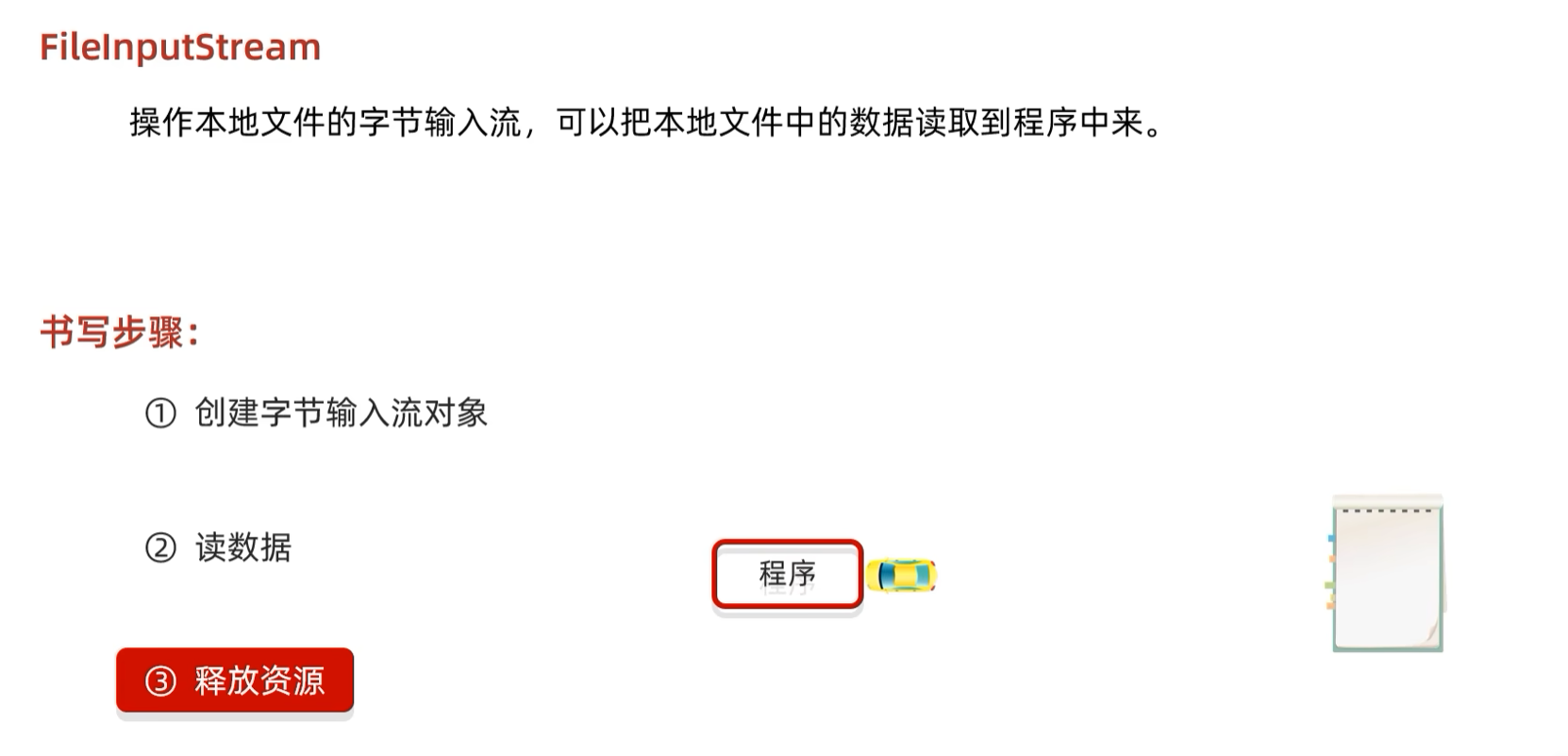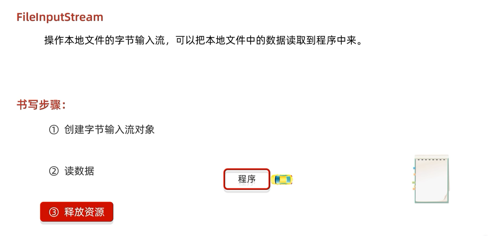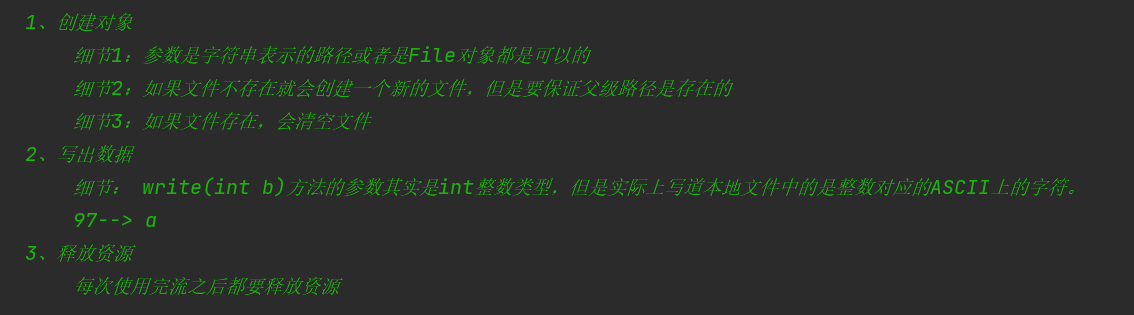 FileOutputStream 是用于向文件中写入字节数据的输出流,继承自 OutputStream。