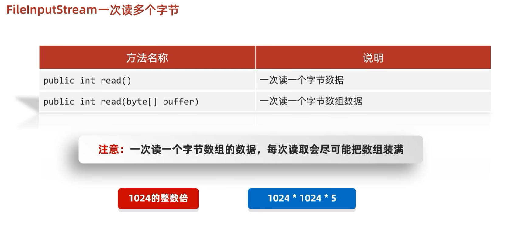 public int read(byte[] buffer) 一次读取一个字节组数据