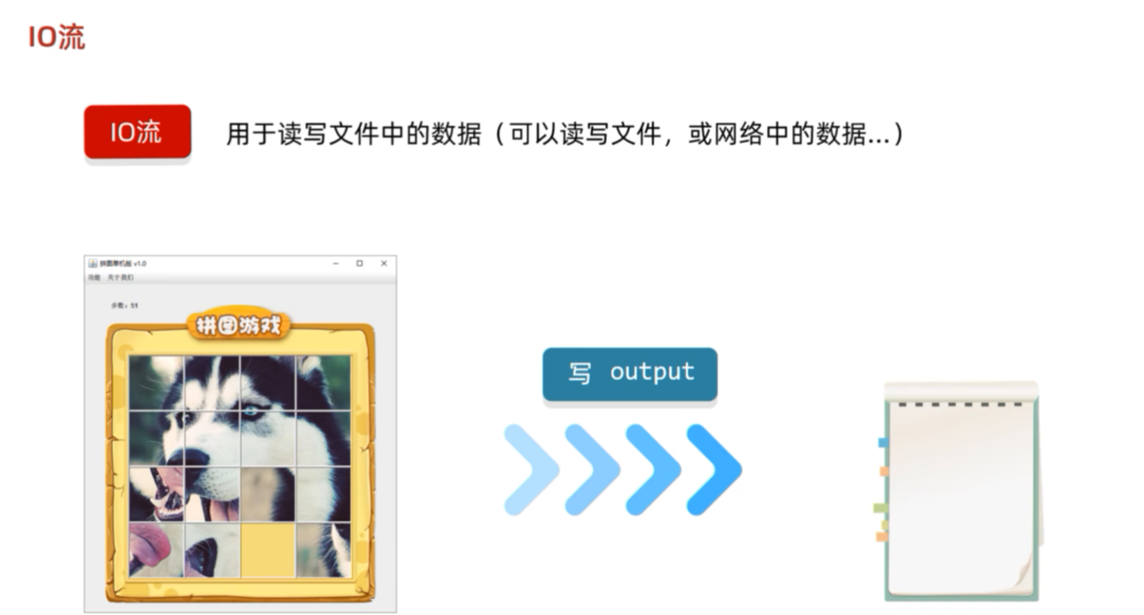 - 输出流(Output Stream):将数据从程序写入到目标设备中。