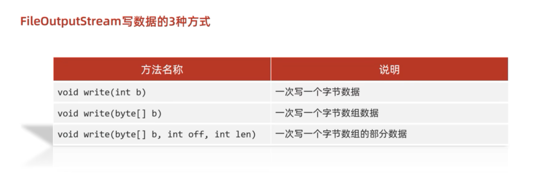 void write(byte[] b, int off, int len) 一次写一个字节数组的部分数据