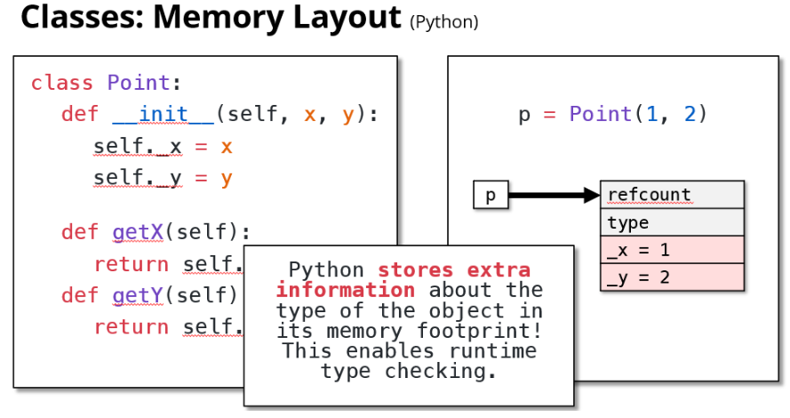 Python会存关于对象类型的额外信息,来确保运行时类型检查。