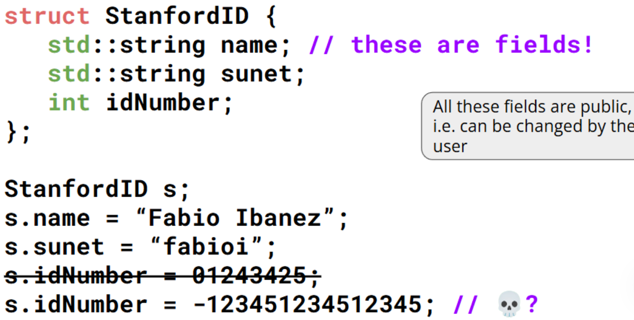 使用结构体(structs)时,不存在直接的访问控制(机制)。