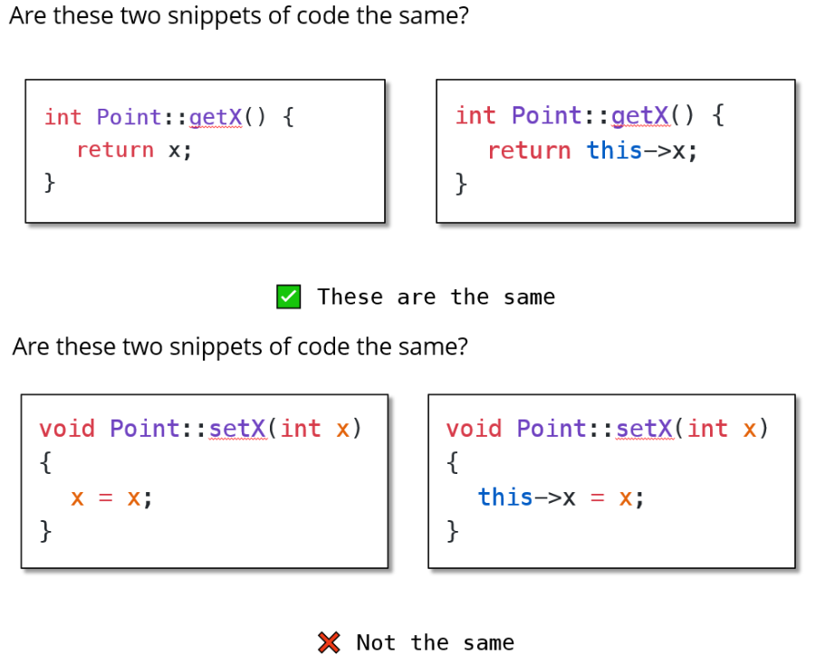 // 使用 this 关键字来明确区分你所指代的是哪个 "name"。