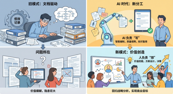 长期以来,许多团队陷入了一个误区:把"需求分析"等同于"写 PRD(产品需求文档)"。在这种僵化的模式下,需求分析师变成了信息的搬运工------记录业务方的口述,整理成文档,再丢给开发。这不仅让分析师沦为被动的"记录员",更让大家产生了一种错觉:只要文档够厚、格式标准,需求就分析好了。