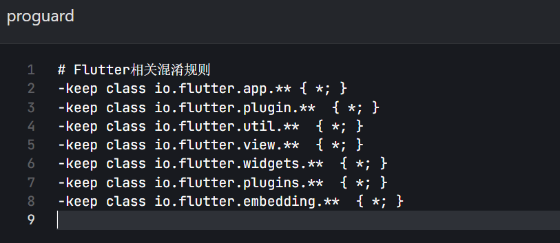 android/app/proguard-rules.pro中添加 Flutter 必要的混淆规则(避免核心代码被误删):