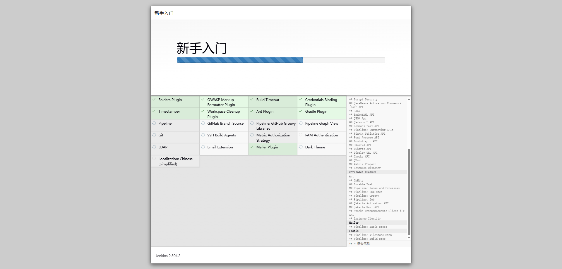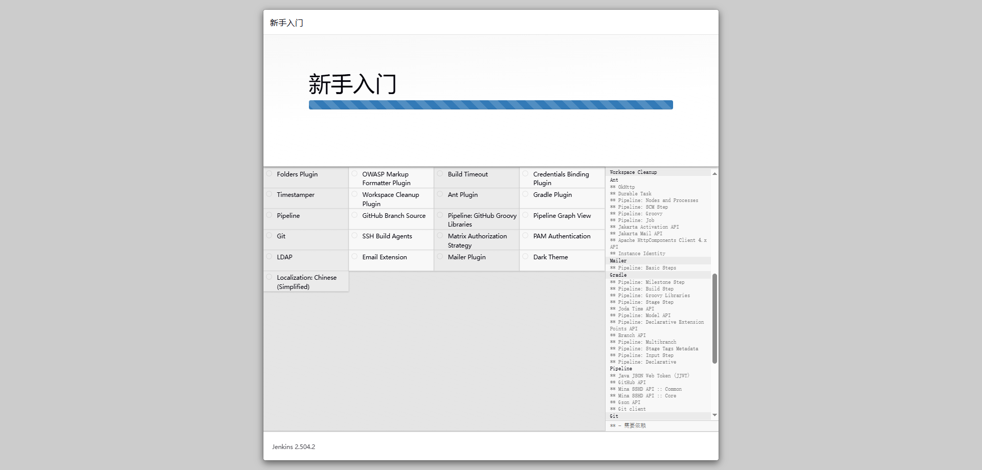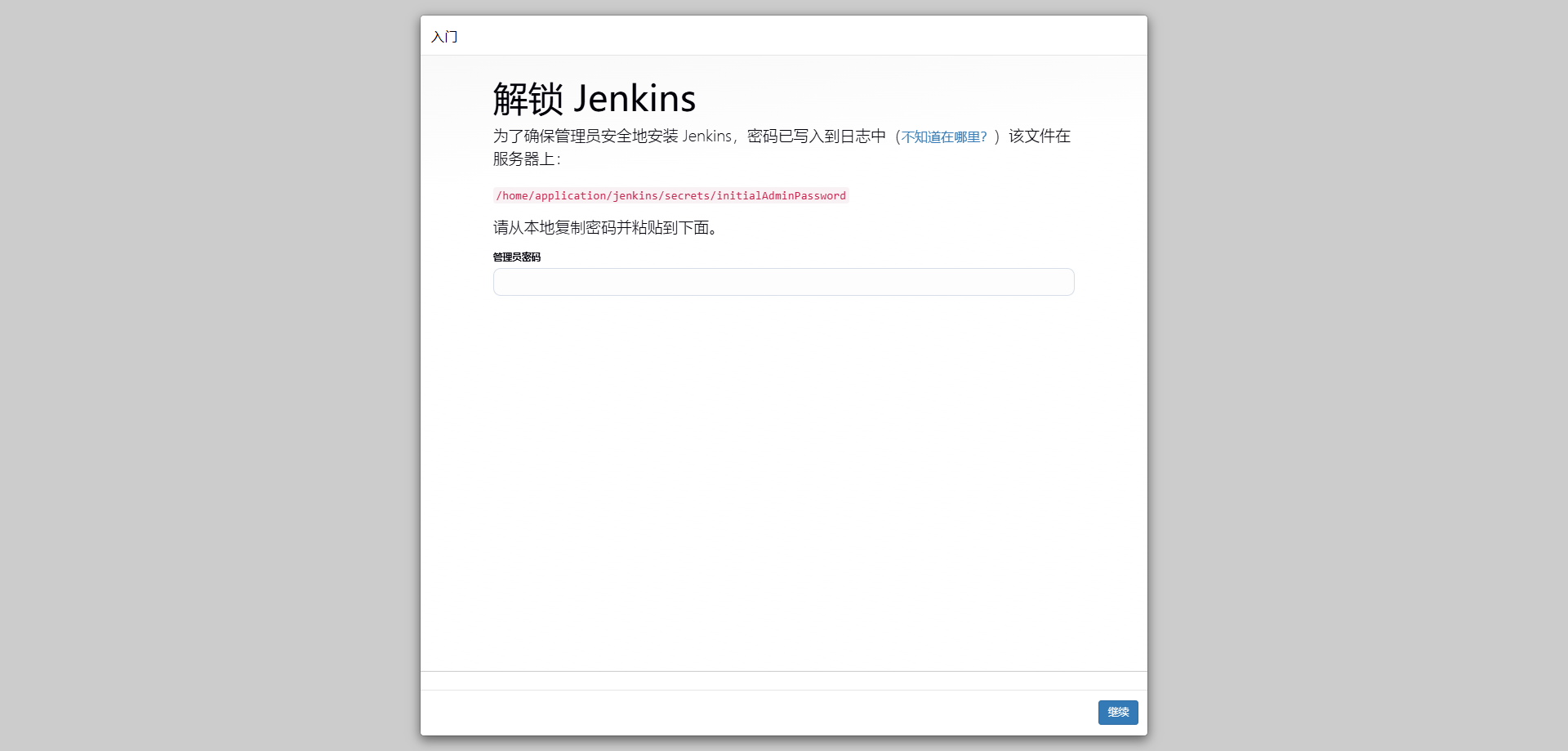/home/application/jenkins/secrets/initialAdminPassword文件,获取初始密码,输入密码登录