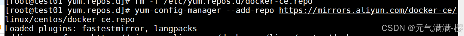 [root@docker ~]#yum-config-manager --add-repo https://mirrors.aliyun.com/docker-ce/linux/centos/docker-ce.repo