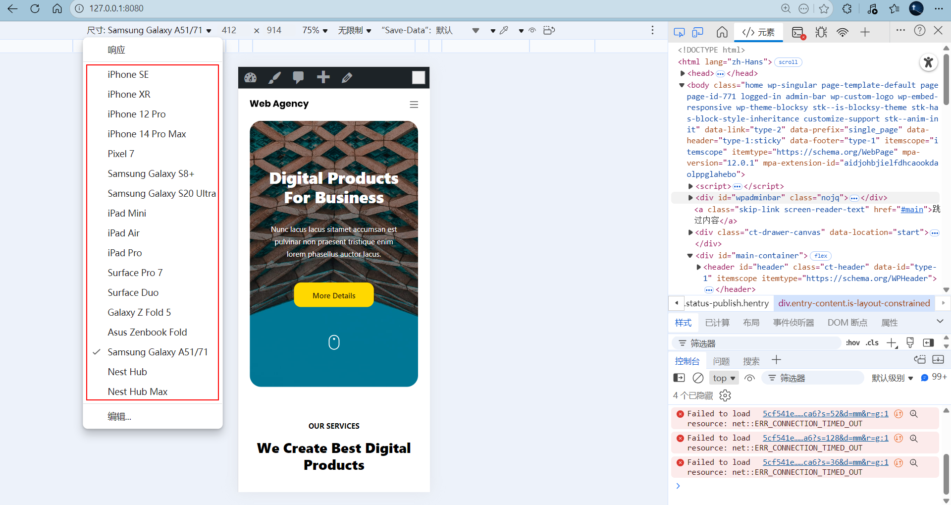 在网页上点击鼠标右键,选择"检查",在开发者工具中点击顶部这个切换设备工具栏的按钮,然后就可以切换网站显示的尺寸,比如调整为手机端或者平板电脑。可以看到网站的显示内容会响应式变化。