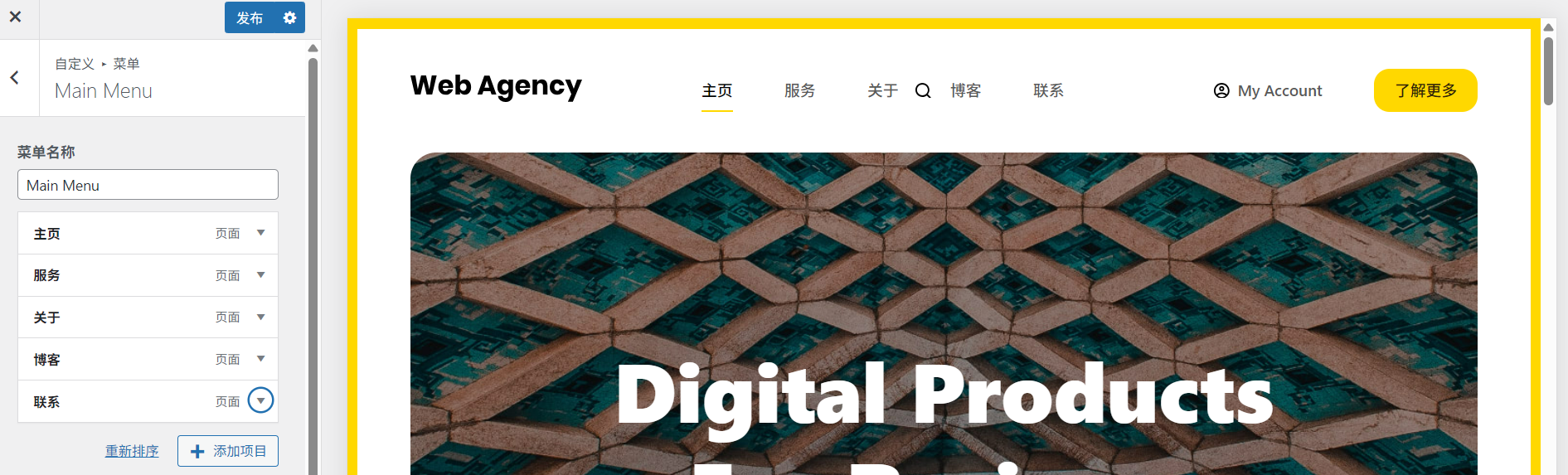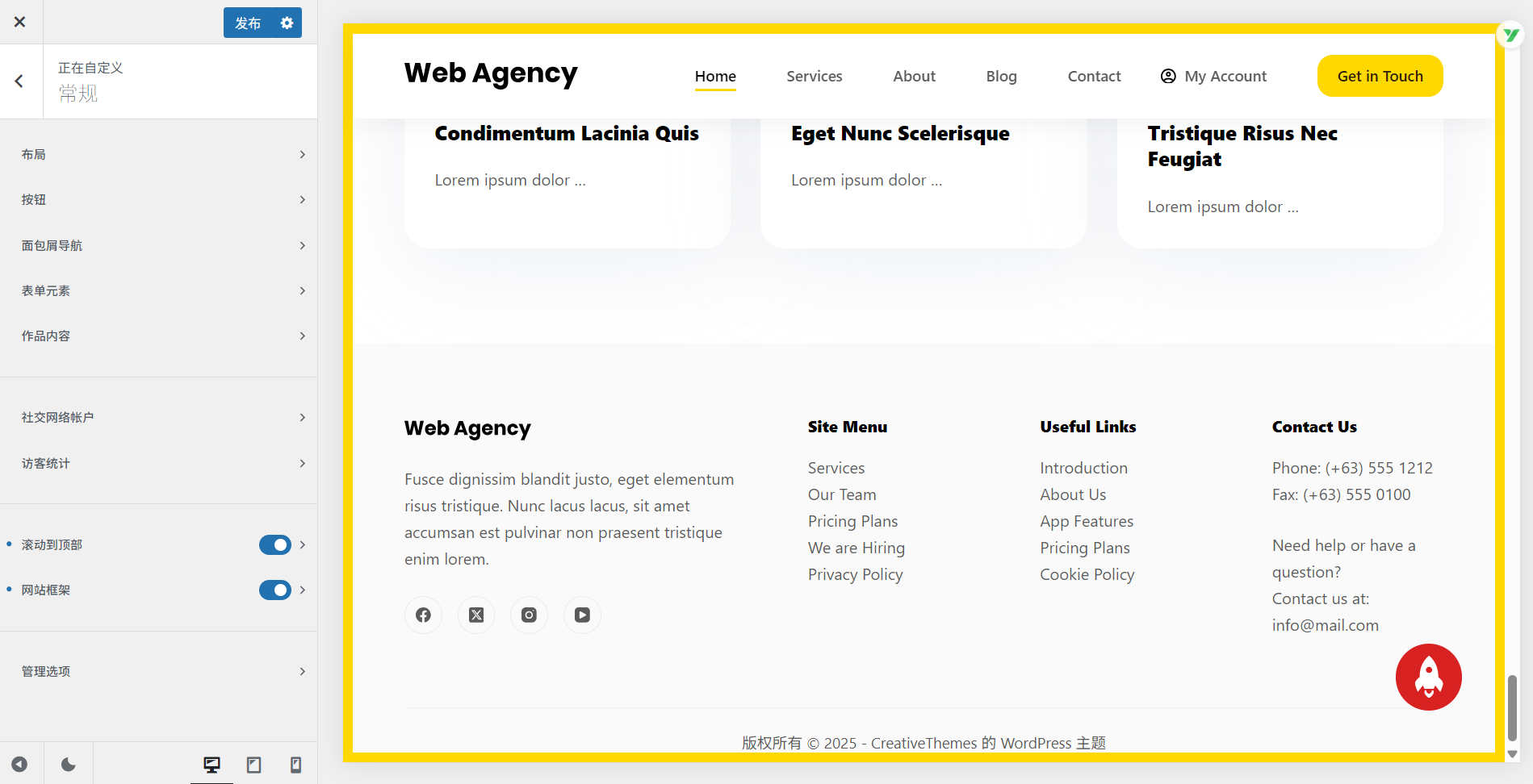 自定义菜单还可以对网站的整体色调和字体进行修改。剩下的一些设置和功能可能并不常用,你可以自己研究一下。最主要的功能还是拿来编辑页眉和页脚。