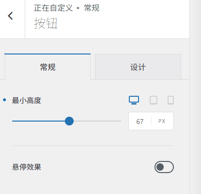 接下来是"按钮",这里可以设置按钮的最小高度,以及开启悬停效果。