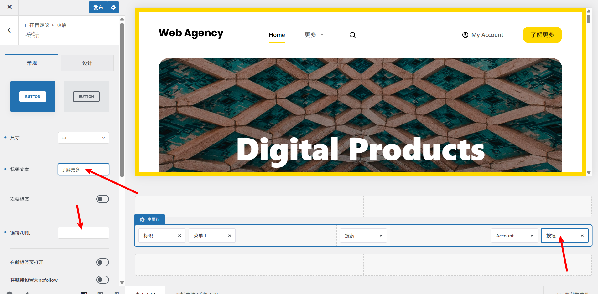 右上角这个按钮,你也可以点击对它进行编辑,比如修改它的文字、要跳转的链接,是否要让链接在新的标签页打开等等。