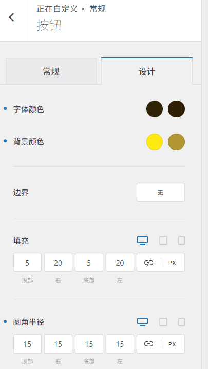 下面还可以设置按钮的内边距和圆角半径,这些参数你都可以自己调一调,看看页面上的元素会不会发生变化。