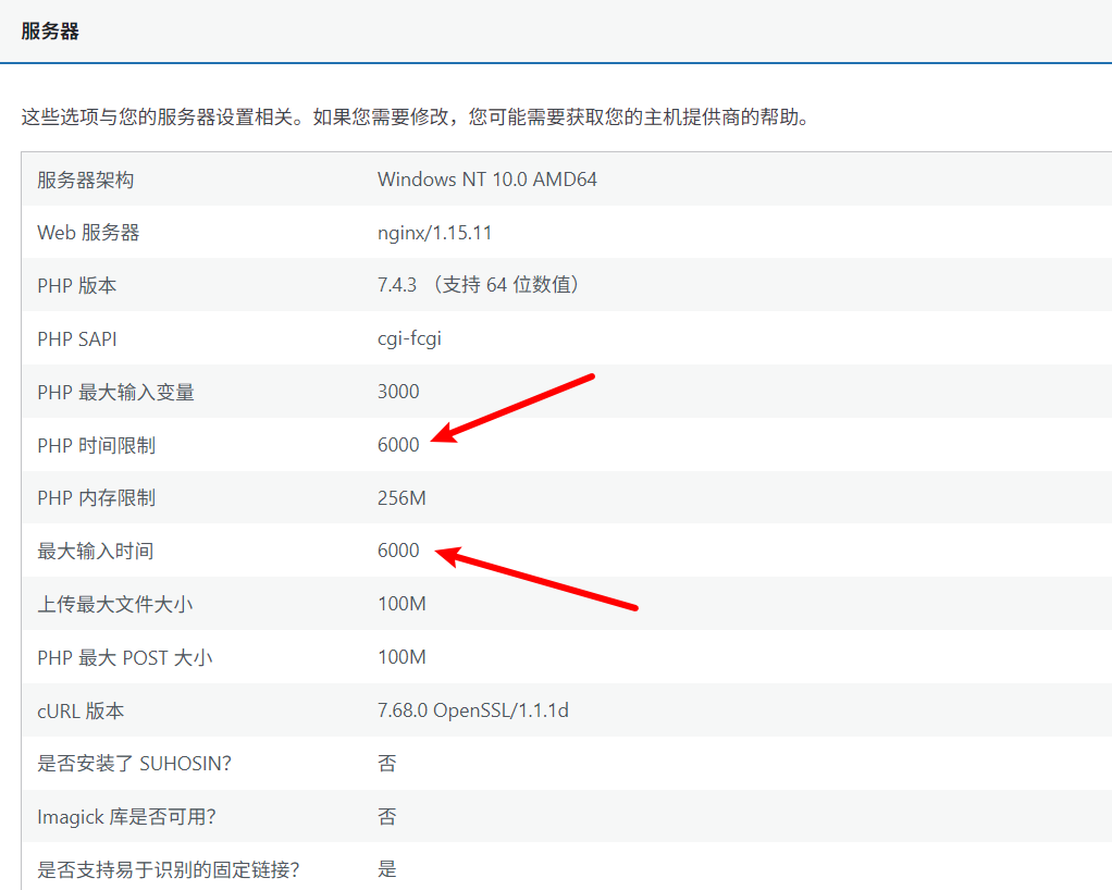 修改完成后,回到管理后台的"站点健康"页面,刷新一下,看一下服务器的PHP时间限制有没有更新。