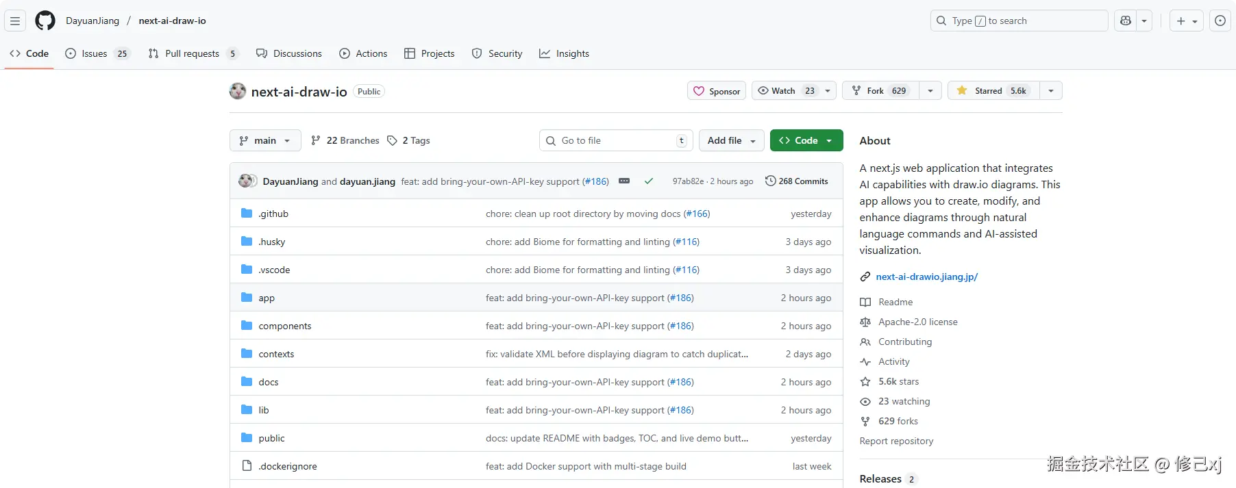 在AI技术重塑应用格局的时代,智能图表绘制工具正逐渐成为技术文档编写、系统设计与团队协作中不可或缺的利器。过去我常使用 draw.io 制作图表,而最近在 GitHub 上发现了一个为 draw.io 集成 AI 能力的项目------这无疑是为这款工具插上了智能的翅膀。今天,就让我们一起来了解这个令人期待的项目。