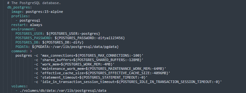 dify-1.10.1版本的docker-compose.yaml中的数据库配置