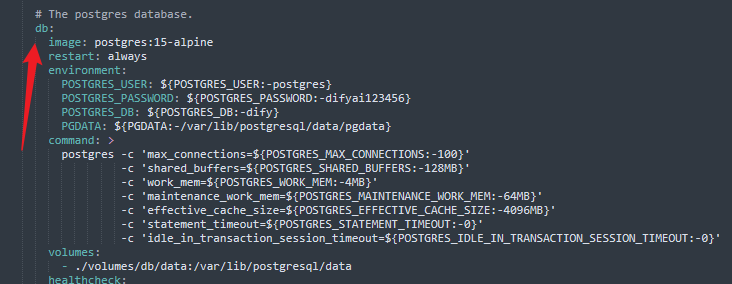 如dify-1.10.1中.env数据库的配置,和docker-compose.yaml的数据库服务配置都和之前的版本不同。
