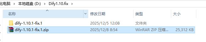 3.1 合适的位置解压最新版的Dify v1.10.1-fix.1,如下图: