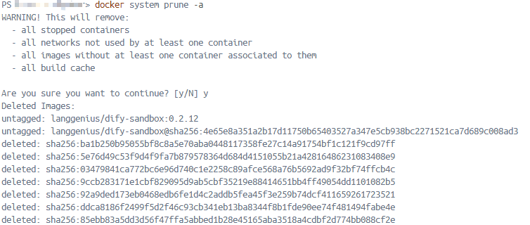 此步骤不是必须,但是建议还是加上,这会清除所有未使用的镜像、容器和缓存。可以在拉取镜像防止受之前的缓存影响