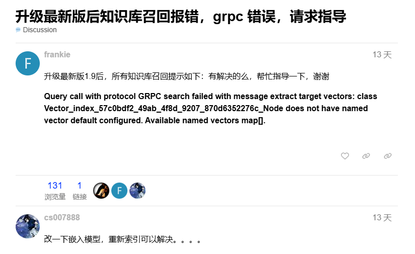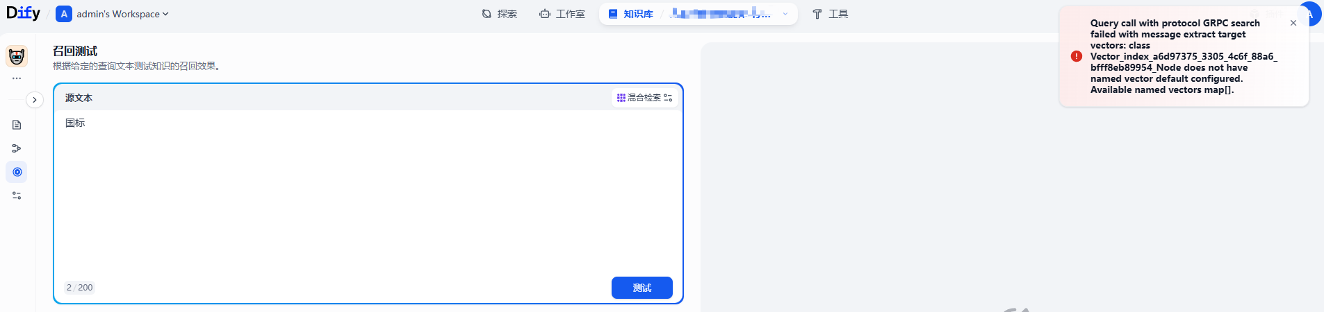 解决办法其实很简单,重新修改一下知识库的嵌入模型,我这里将BAAI/bge-m3修改为了BAAI/bge-large-en-v1.5保存,召回测试
