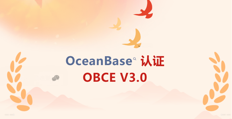 OBCE V3.0认证课程是 OceanBase 官方授权的最高级别技术课程,专为数据库架构师和运维专家打造,助力你拿下 OBCE 顶级认证,跻身 OceanBase 技术精英阵营。