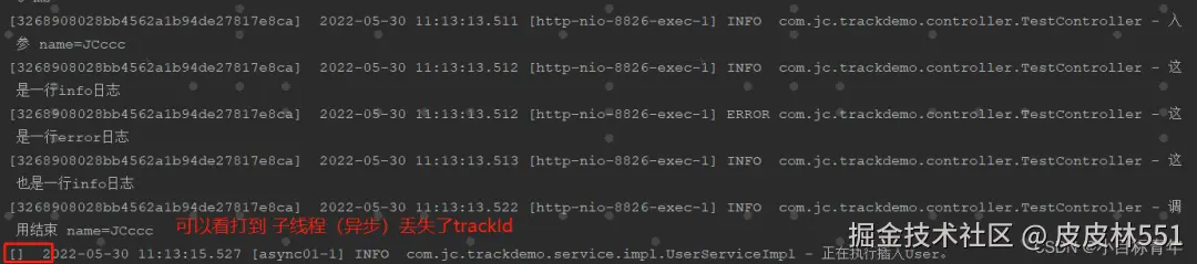 所以我们需要针对子线程使用情形,做调整,思路: 将父线程的trackId传递下去给子线程即可。