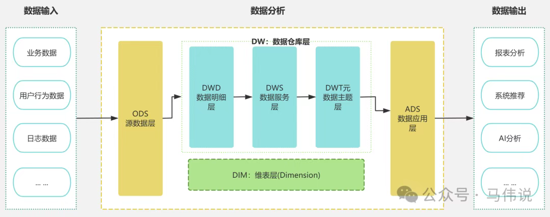 每个公司的业务都可以根据自己的业务需求分层不同的层次;目前比较成熟的数据分层:数据运营层ODS、数据仓库层DW、数据服务层ADS(APP)。