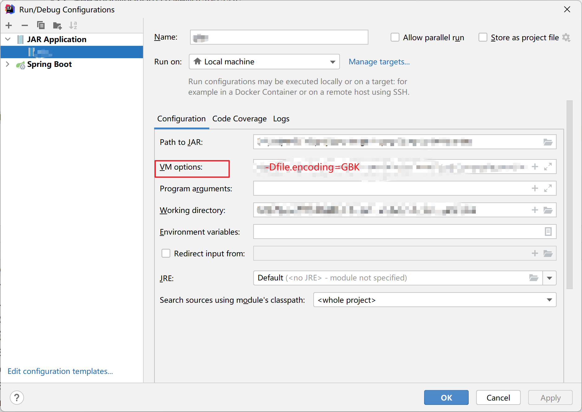 我用的jdk是21(其他版本也可以试试),把虚拟机参数的vmoption改成-Dfile.encoding=GBK就好了