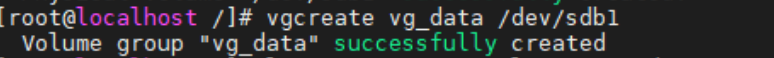 - 使用【vgcreate vg_data /dev/sdb1】创建卷组