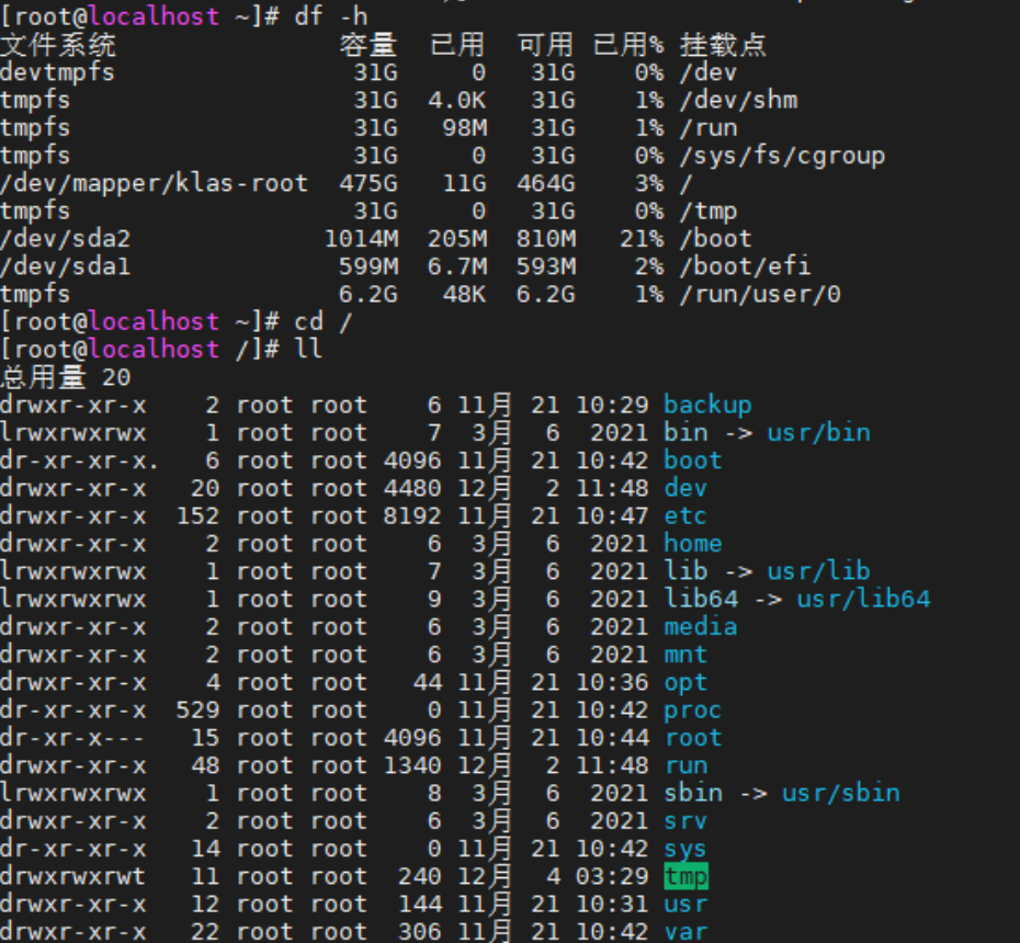 - 使用【df -h】查看当前挂载情况(主要是看对应存储是否已被挂载到具体目录)