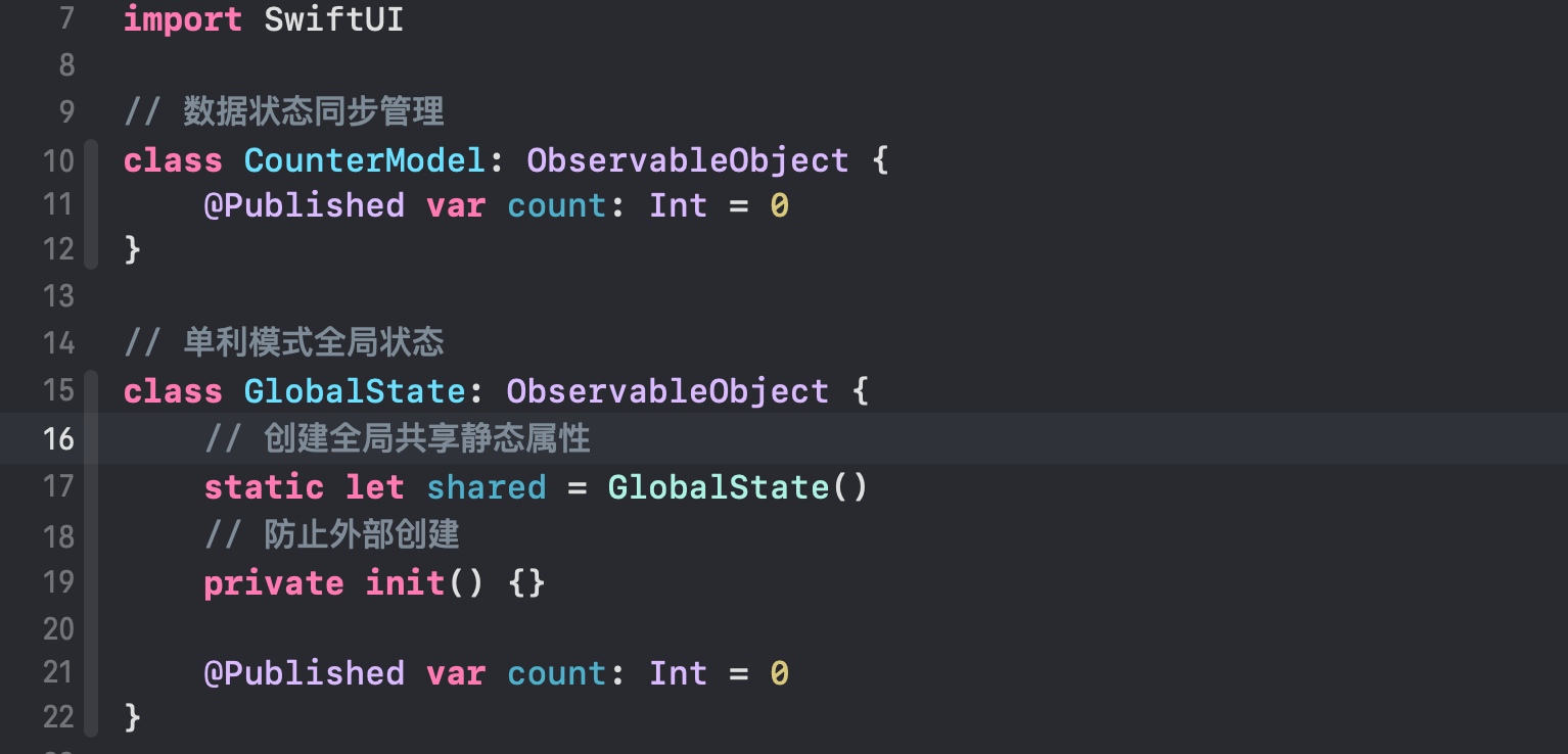 Text("另一个子组件:当前计数:\(globalState.count)")