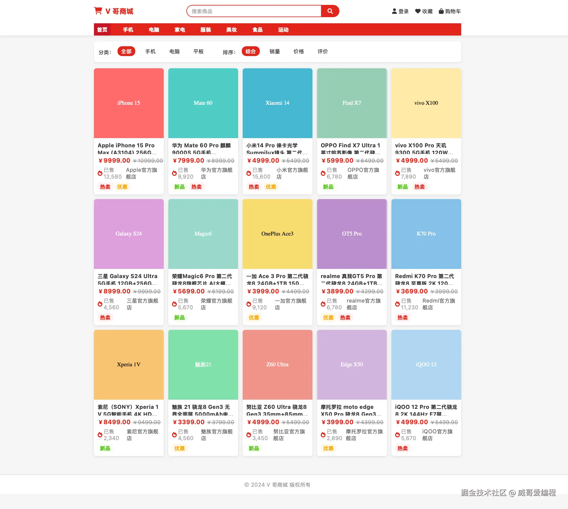 - 更新了`index.html`文件,将页面标题从"京东商品列表"改为"V哥商城"