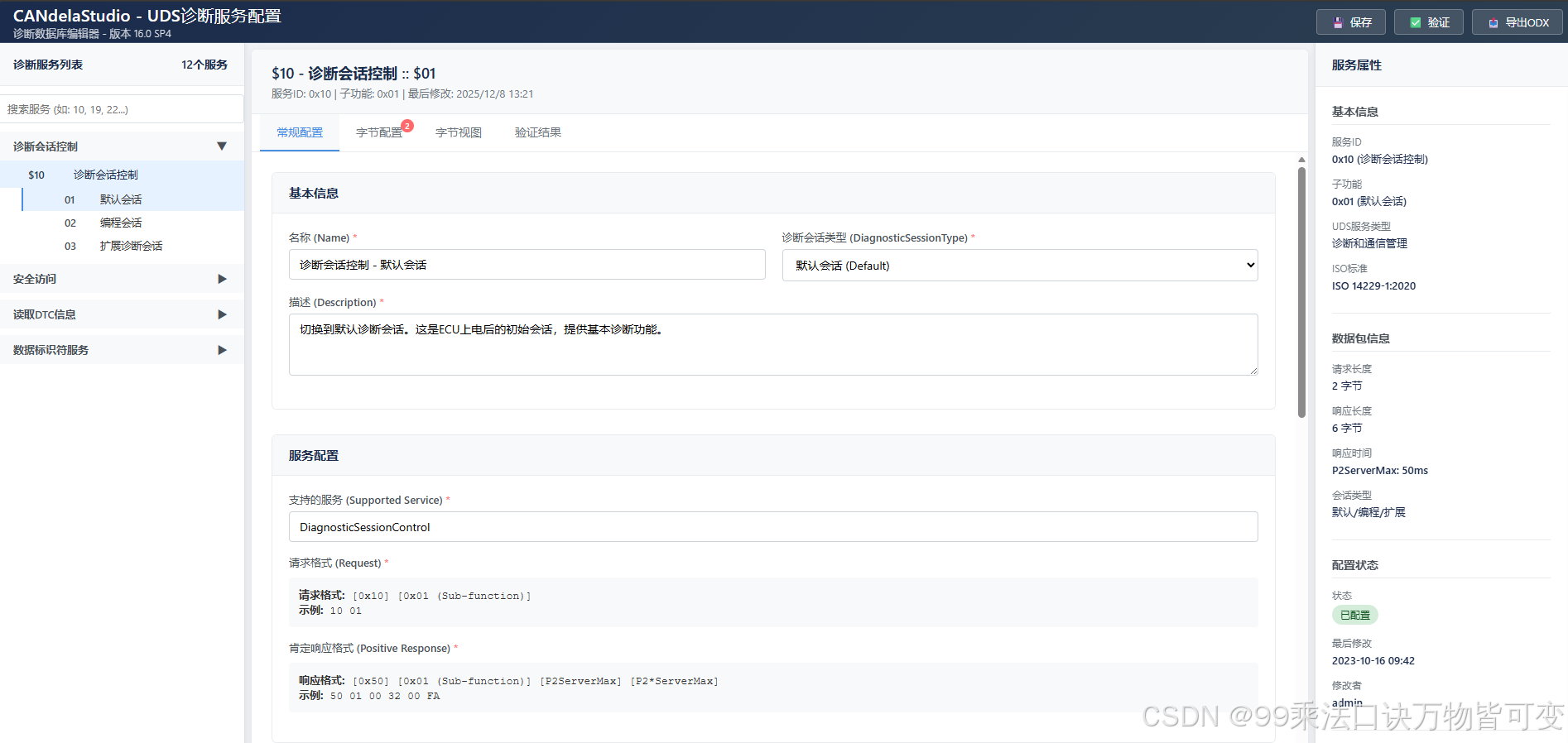 - 右侧:操作按钮(保存 💾、验证 ✅、导出 ODX 📤)。