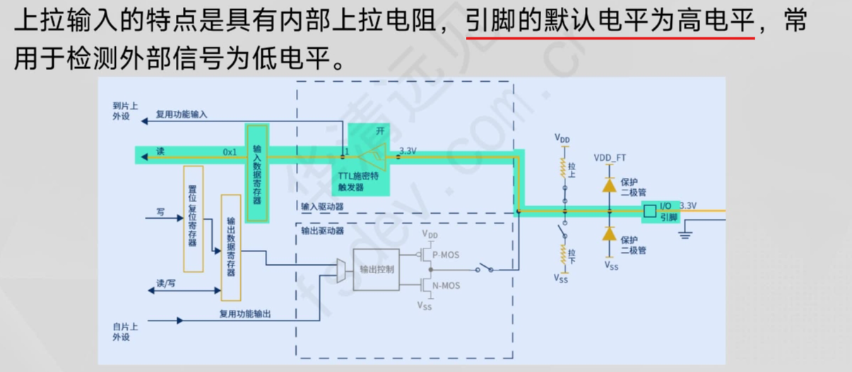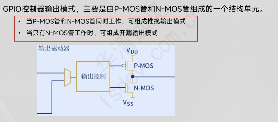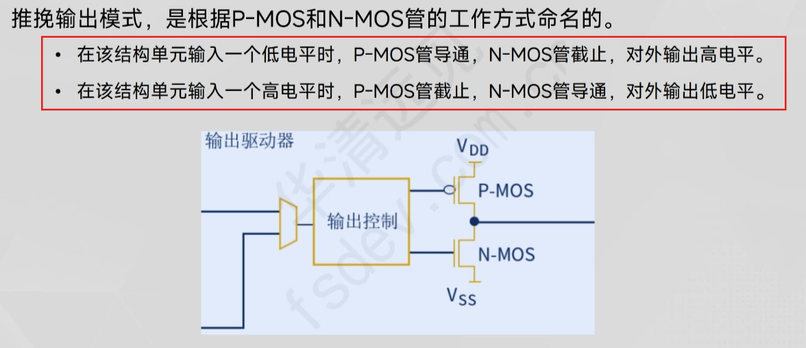 输出控制电路会做一个反向,寄存器输入1是反向成0,P-MOS管导通,即对外输出高电平
