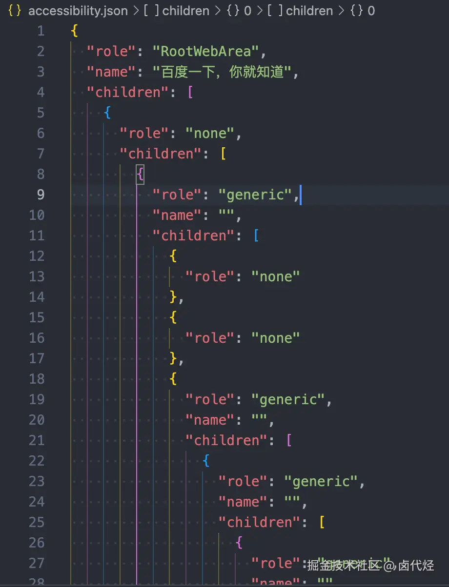 - 首先,我们通过 pptr 的可访问性 API 拿到 DOM 的 JSON 树: