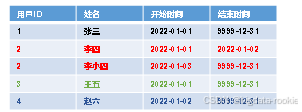 select * from user_info where start_date <='2022-01-02' and end_date >= '2022-01-02'