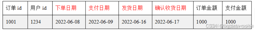 - 累积型快照事实表是基于一个业务流程中的多个关键业务过程联合处理而构建的事实表,如交易流程中的下单、支付、发货、确认收货业务过程。