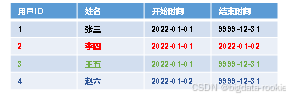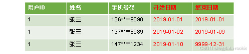 通过,生效开始日期 <= 某个日期 且 生效结束日期 >= 某个日期,能够得到某个时间点的数据全量切片。